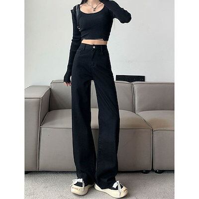 デニムワイドパンツ 秋新作 ワイドパンツ ジーパン 垂下感 簡単な カジュアル 韓国ファッション 百掛け やせて見える
