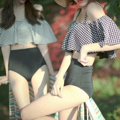 【翌日発送】水着 レディース 体型カバー水着スイムウェア レディース セパレート 上下セット フリル オフショルダー バンドゥ ビキニ ショートパンツ 2点セット フレアトップ リボン 女性用 体型カ | Jeannede ジャンヌデ