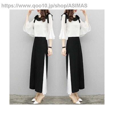 ワイドパンツ二点セットレディース春夏シフォンブラウス半袖シフォンワイドパンツセットアップリボンプリーツパンツおしゃれパンツセット無地シンプルフォーマルカジュアルおしゃれ