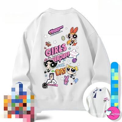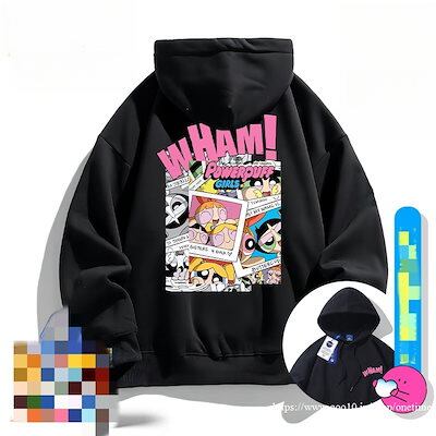 韓国 パワーパフガールズ 可愛い ゆったり トップス カジュアル プリント 男女兼用 ペアルックパーカー/レディースパーカー ルームウェア 長袖パーカージャケット/ア