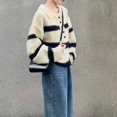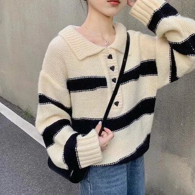 人気なリブニット しま模様 おしゃれ 百掛け 秋冬 ゆったり ベ一シックニット 着痩せ 気質 セーター レディース フレッシュ トップス