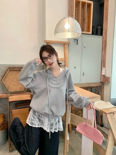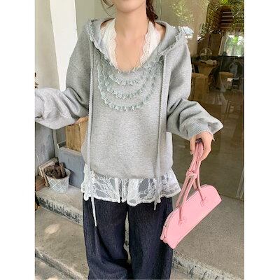 2024秋冬トップス 普段使い 韓国風長袖レトロパーカーカジュアルルーズファッション系ゆったり大人っぽかわいいレディースフード付き羽織りサイズきれいめシルエットトレーナー 大学生通学高校