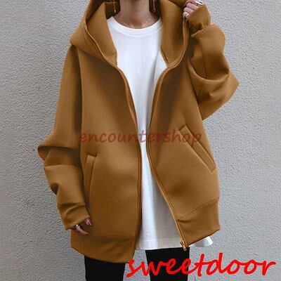 パーカー レディース ジップアップパーカー ロング丈 裏起毛 パーカー 無地 秋冬 レディース アウター 部屋着 暖かい 大きいサイズ ゆったり 新作