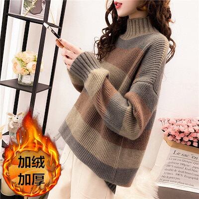 人気なリブニット 裏起毛ファッション 秋冬 大人気セーター!セミロングニット トップス 厚手カシミヤタッチ ニットセーター レディース着痩せタートルネックニット 怠惰な風 ベーシックニット