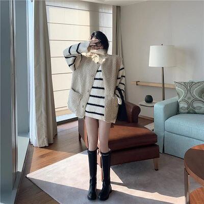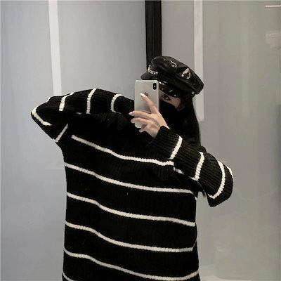 人気なリブニット ベーシックニット カシミヤタッチ 秋冬ニットセーターレディースカジュアルラブリー上着セーターゆったりボーダーwwy162裹起毛 長袖トップス