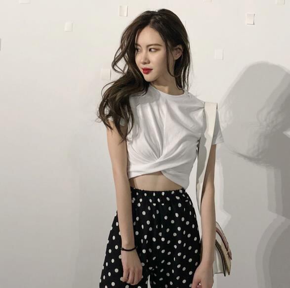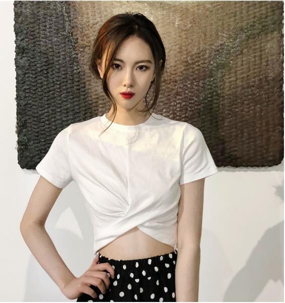 Tシャツ 夏新作 レディース ヘソ出し 半袖 カジュアル フロントクロス トップス 2色展開 M#-XXL#
