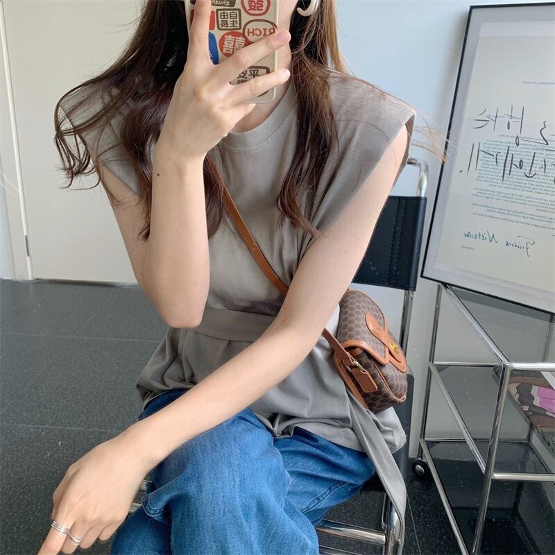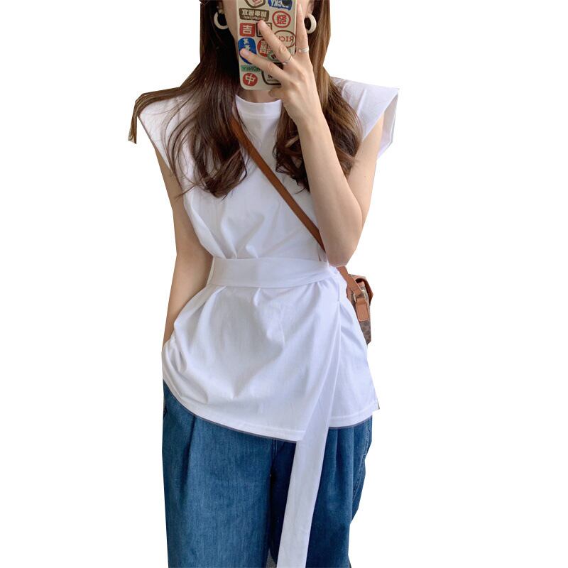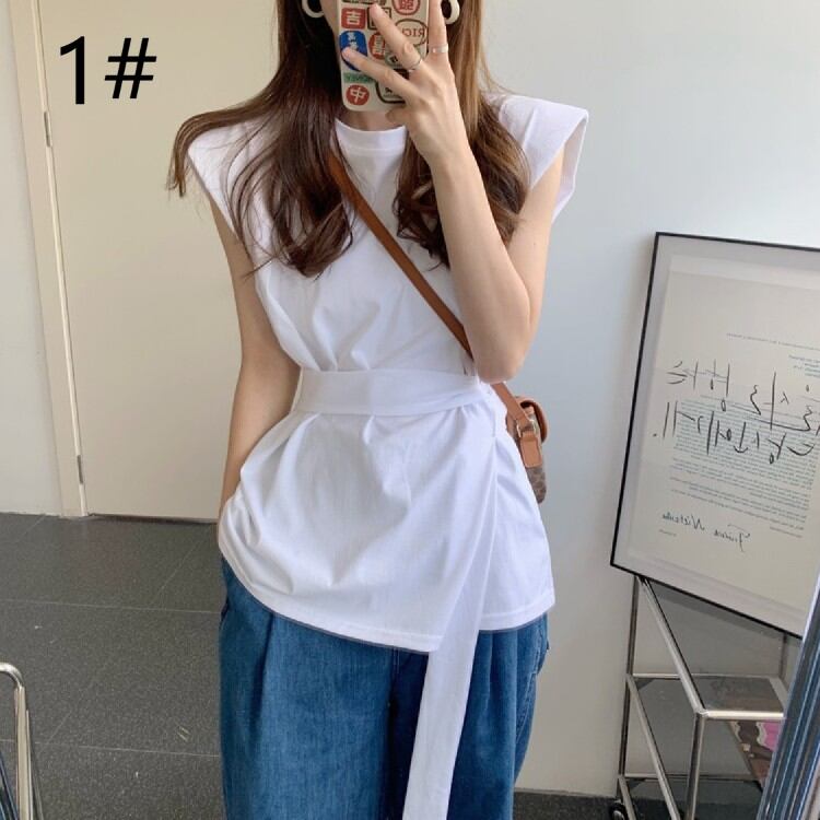 2022春夏新作 ノースリーブ Tシャツ トップス tシャツ レディース ベルト付き 着回し