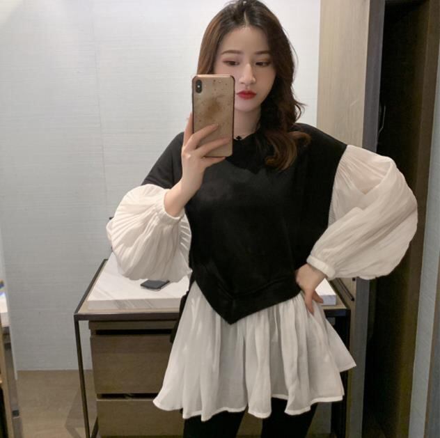 レディース服 シャツ トップス 切り替え パフスリーブ ファション 着痩せ 2022年春秋新作 2色展開 M#-L#