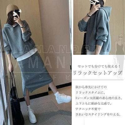 セットアップ レディース ジャージ 2点セット スカート パーカー フード付き 長袖 スウェット スリット スカート ワイドパンツ 上下セット ジャージ ルームウェア 普段着 ゆったり カジュアル 春