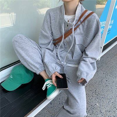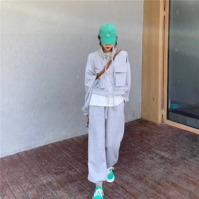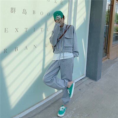 セットアップ レディース 上下セット グレー かっこいい おしゃれ 大人可愛い プルオーバー ジャージ スウェット パンツ ツーピース ジョガーパンツ スポーティー 長袖 パーカー フード無 無地 ラ