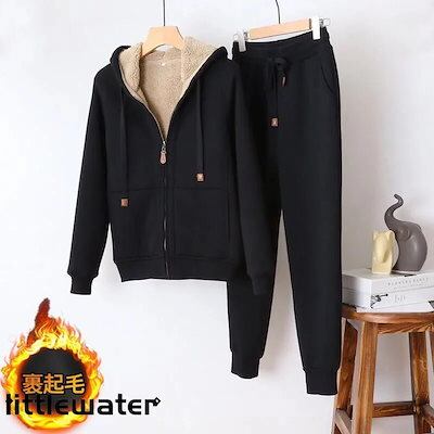 セットアップ レディース 上下セット ジャージ パーカー 裏起毛 厚手 真冬 秋冬 裾口ゴム カジュアル 防寒 冷え対策 普段着 シンプル 無地