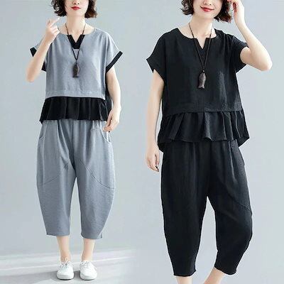 「ファットガール」 民族風 上下セット 春夏 レディース 大人 30代 40代 体型カバー 大きいサイズ セットアップ 中華風 ジャージ 卒業式 ママ フォーマル スーツセットアップ 17 メガ割30