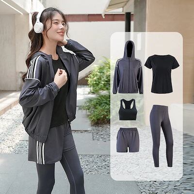 今年の流行ファッションヨガウェア セットアップ ヨガトップス 【 5点セット 】 長袖 半袖ショーツ トップス タンクトップ 速乾 運動ズボン ホット ジャージ ヨガパンツ レギンス レディース 上下
