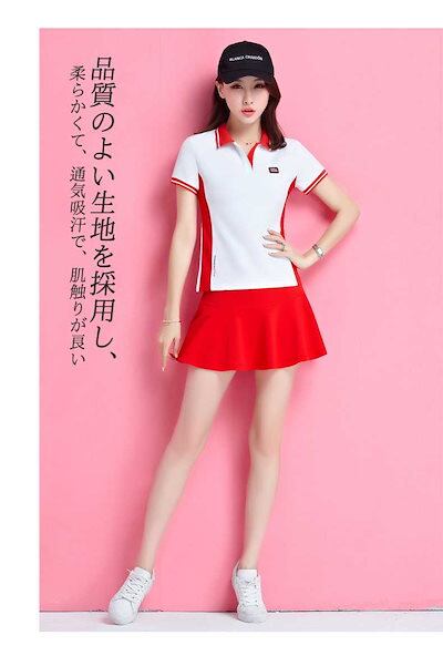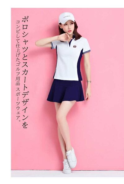 【TIME HOLDER】ゴルフウェア レディース 上下セット 半袖ポロシャツ ミニスカートテニスウェア スポーツウェア ジャージセット 運動着 スウェット スポーツセット 春夏 カジュアル 無地 シ
