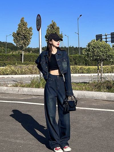 2024 9月 新作 アメリカンレトロ デニム スウェット上下セット 運動セットカジュアル ゆったりスウェット2点セット セットアップ レディース 韓国ファッション 人気 レディース