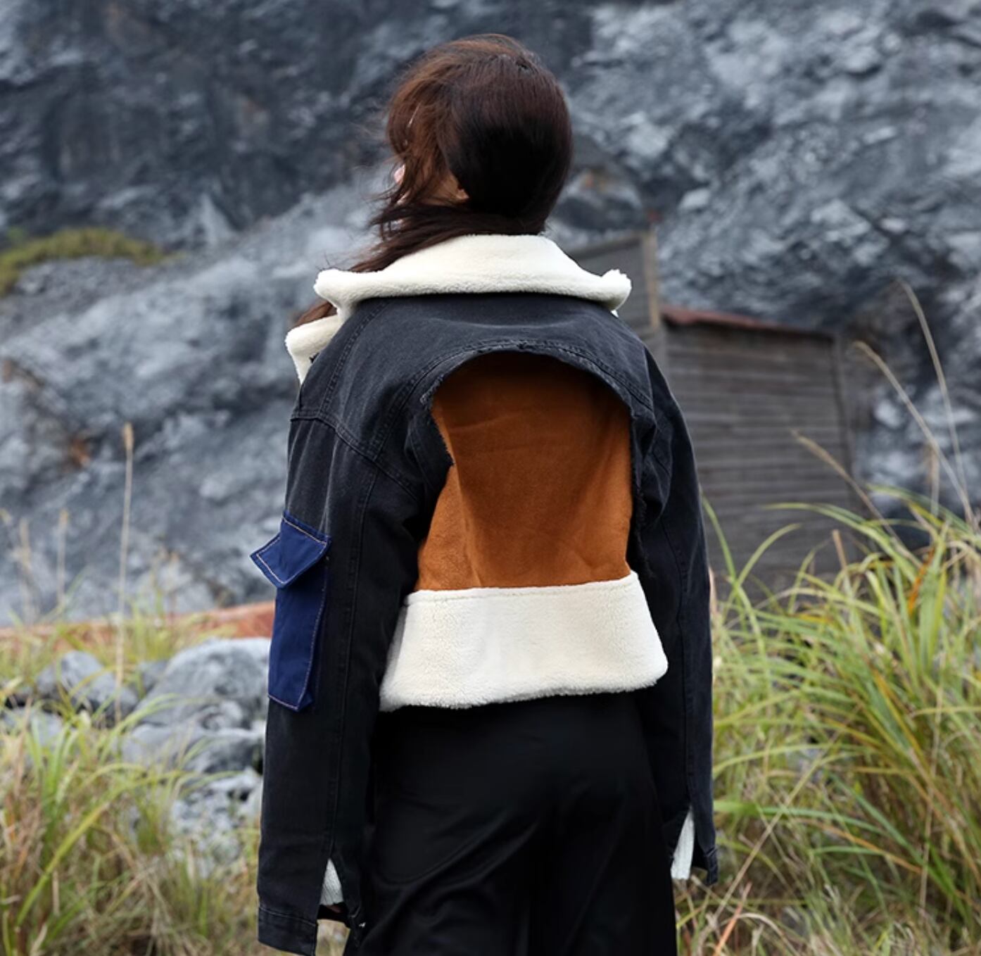 裏起毛 デニムジャケット アウター 分厚 縫付 y2k ブルゾンジャケット レディース コート 子羊の毛 短いスタイル ストリートウェア
