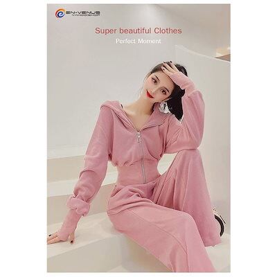 スウェット レディース セットアップ 上下セット ワイドパンツ ジャージ ジップパーカー フード付き 大きいサイズ 体型カバー スポーツ ルームウェア 部屋着