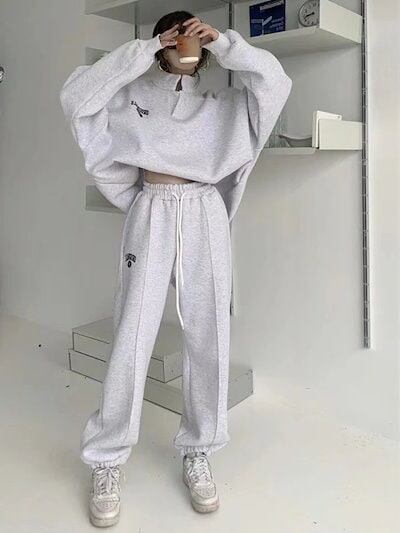 2023ブランドスウェットセットアップ上下二点長袖立ち襟アウター無地スウェットパンツ韓国ファッションレディース春服トレーニングウェア レディーススポーツウェアレディース