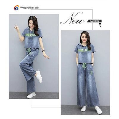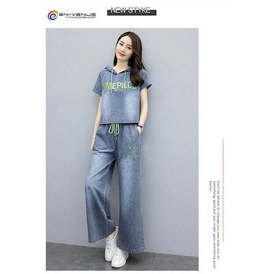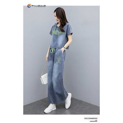 セットアップ レディース 上下セット 春夏 上下セット デニム パーカー ガウチョパンツ 着痩せ おしゃれ 通勤 通学 夏用 大きいサイズ 送料無料