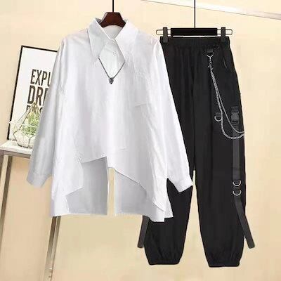 涼しく楽ちんセットアップ 地雷系 男女兼用 韓国メンズファッション 長袖シャツ+パンツ スポーツウェア レディース 大きいサイズ 2点セットスウェット