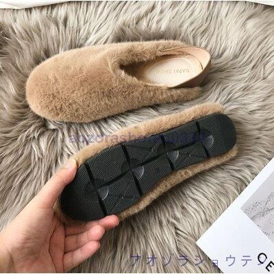 バブーシュタイプのフラットパンプス ファー パンプス ムートン モカシン オールシーズンOK ローファー シューズ レディース 裏ボア レディース