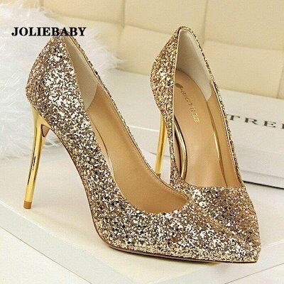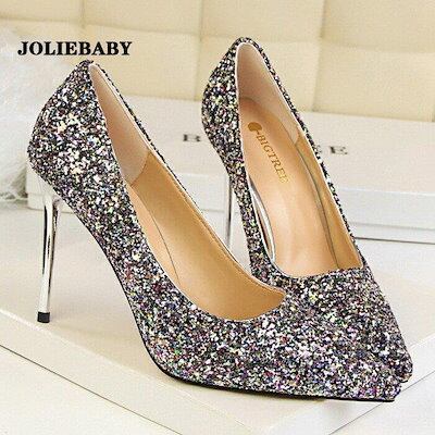 パンプス 痛くない 結婚式 レディース ポインテッドトゥ キラキラ ウェディングシューズ ハイヒール ピンビール ブライダル パーティー キャバ嬢 発表会 演奏会