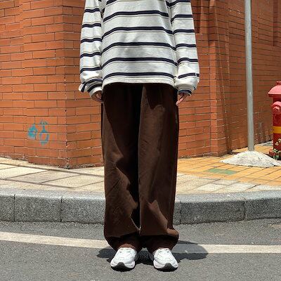 4色 韓国ファッション ワイドパンツ レディース ロングパンツ 日系 メンズカジュアルパンツ 無地 男女兼用