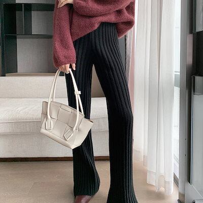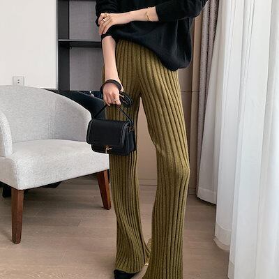 ニットパンツゆったりした新型秋冬韓版無地 ハイウエスト 垂れ下がって感 ワイドパンツ セーターズボン脚長効果!スキニーパンツ スラックスパンツ
