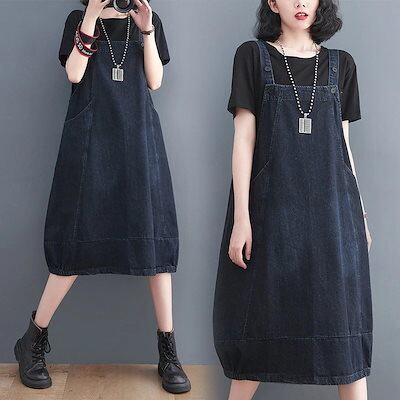 サロペット レディース 春と夏の新韓版 サロペットスカート 純色デニムワンピース女性のスリムストラップスカート ワイドパンツ オールインワン レディース