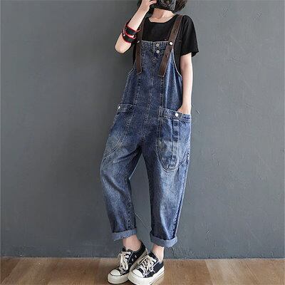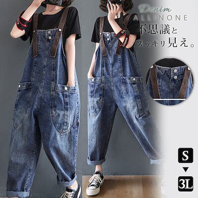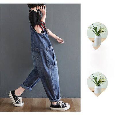 デニムサロペット レディース サロペット オールインワン サルエルパンツ オーバーオール ワイド ロング ゆったり カジュアル 夏物 大人 可愛い