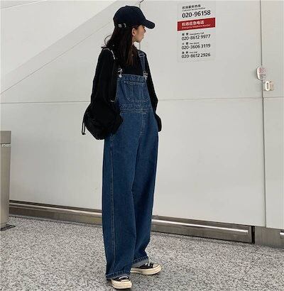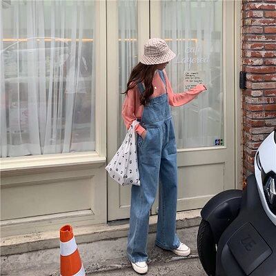 2色 オーバーオール デニム ジャンプスーツ レディース パンツ ボトムス ズボン カジュアル 大人可愛い リラックス ワイドパンツ ハイウエスト ジーパン つなぎ おしゃれ 楽ちん 体系カバー バッ