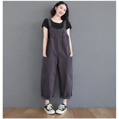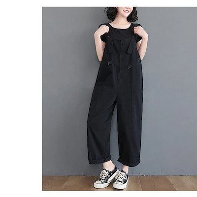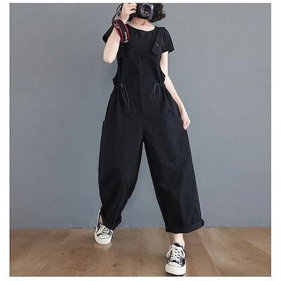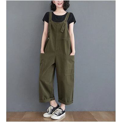 サロペットオールインワンレディースチノパンビッグシルエットオーバーオールサルエルボトム