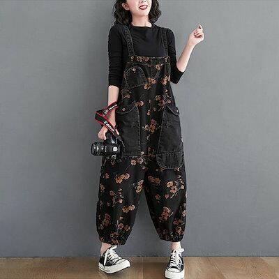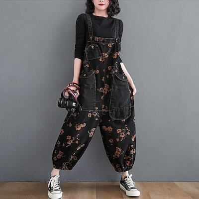 デニムサロペットサロペットレディース夏秋ボトムスパンツ大きいサイズオーバーオールオールインワンゆるサロペットデニムパンツマタニティ花柄妊娠マタニティウエアナチュラルシルエット春秋夏