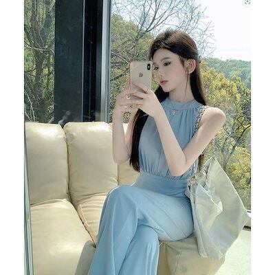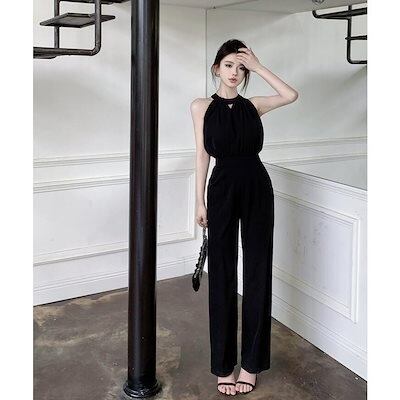 結婚式 オールインワン パンツドレス 上品 ホルターネック レディース ロンパース ハイウエスト ワイド ガウチョパンツ 披露宴 フォーマル 着痩せ