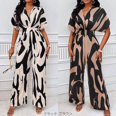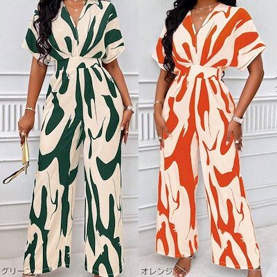 オールインワン ジャンプスーツ 個性的 派手 セクシー オルチャン 韓国 レディース Vネック ワイドパンツ ロング丈 ウエストマーク ブラック ブラウン グリーン オレンジ パープル