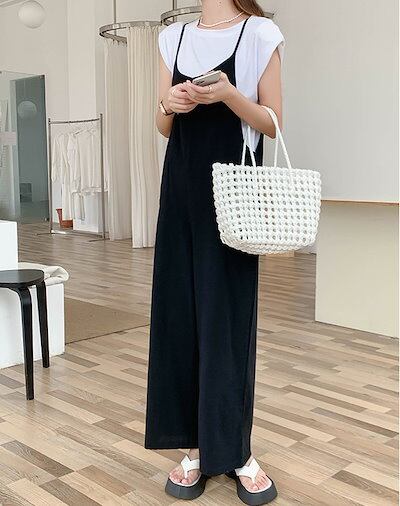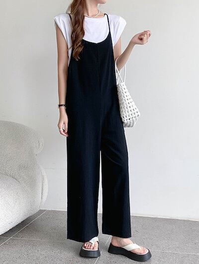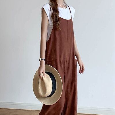 ワイドレッグジャンプスーツ オールインワン ジャンプスーツ ノースリーブ ワイドレッグパンツ 韓国 レディース オルチャン ハイウエスト 可愛い 大人可愛い 大人女子 シンプル きれいめ