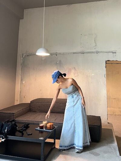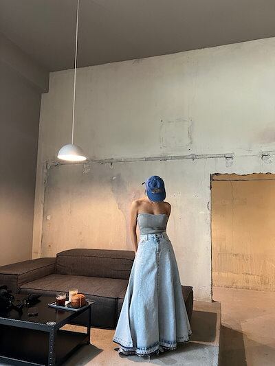 2024 春夏スカート ロング丈 Aライン デニム フレア ハイウエスト 美脚効果 脚長効果 細見え 夏 水色 おしゃれ かわいい 韓国ファッション レディース お出かけ