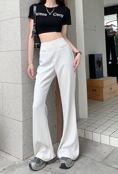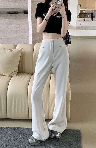 2024 夏 韓国パンツ ロング丈 ポケット ワイドレッグ ハイウエスト 美脚効果 脚長効果 細見え 夏 白 黒 きれいめ おしゃれ かわいい 韓国ファッション レディース お出かけ