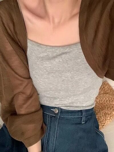 2024 夏 韓国 ショート丈 薄手 カーディガン トップス 長袖 紫外線対策 UVカット冷房羽織り加工 きれいめ ライトニット オフィス OLネックカジュアルフレンチフェミニンファッション韓国レディ