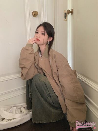 2024春夏アウター コート ジャケット トレンチ ショート丈 ジップ 斜めチャック ゆったり 春 茶色 黒 韓国ファッション レディース おしゃれ かわいい カジュアル お出かけ