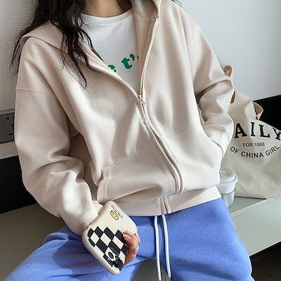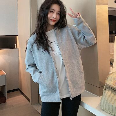 フード付き 長袖ブラウス スウェット レディース 学生 無地 セ ミロング トップス カーディガン