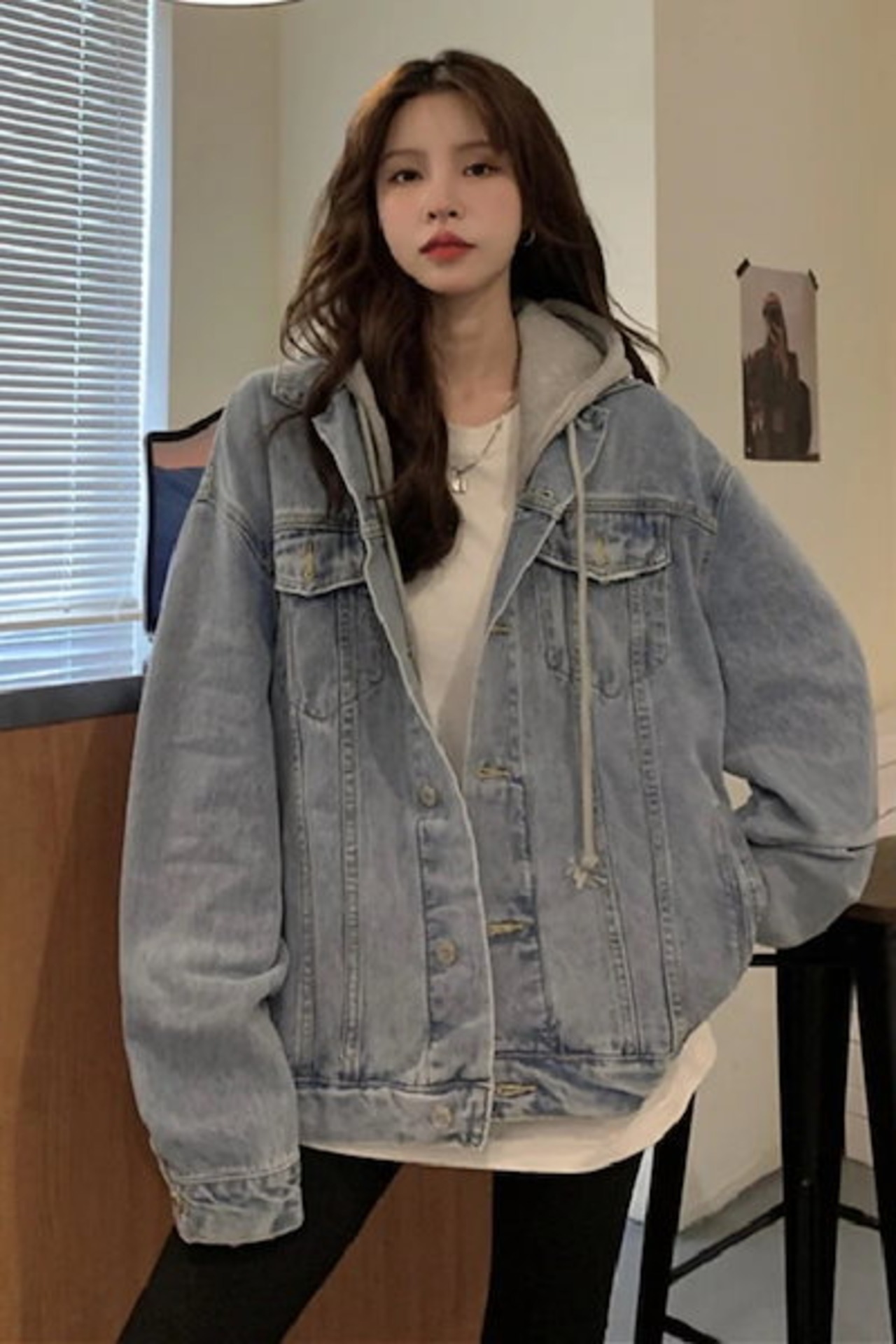冬アウター キルティングアウター ノーカラーコート デニム フード付き 春 レディース フィット アウター