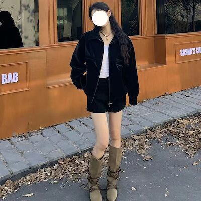 冬アウター 韓国ファッション ゆったり アウター レディース フィット アウター ジャケット レディース スウェットライダースジャケット