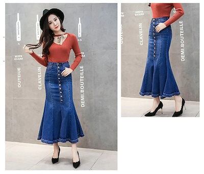 新しい スカート 柔らかく 薄手 の ライトデニム レディース ロングスカート ロング 膝下 ひざ下 デニムスカート 綿100% コットン 大きいサイズ ゆったり