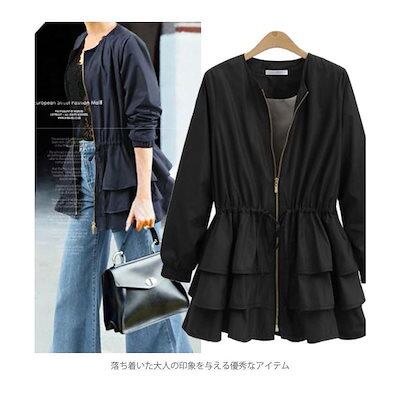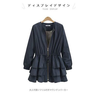 【beifengzh 0 ng】新作マウンテンパーカー レディース ジャケット ノーカラーコート 3段フリルジャケット アウター ライトアウター コート フリル 3段フリル パーカー 秋