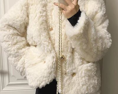 レディースファッション秋と冬のラムウールコートファッショナブルな汎用性の高い豪華な暖かいボタンデザインカーディガントップス