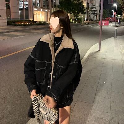 マウンテンパーカーデニムジャケット黒中わた入りラムウールワークコットンレディースファッション