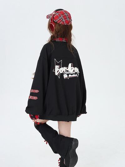 マウンテンパーカー ジャケット サブカルプリントプレイドスプライスベースボールジャケットブラウストップルーズ秋冬レディースジャケット 韓国ファッション クリスマス