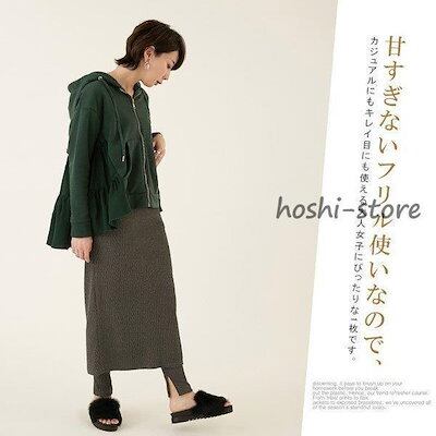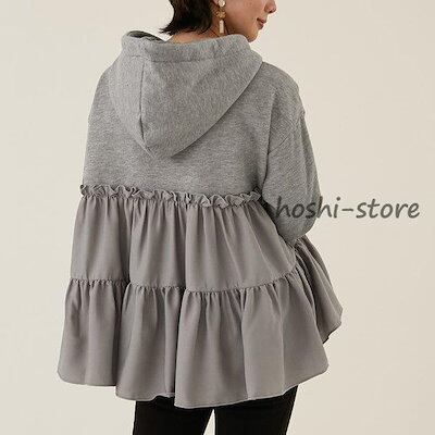 早く新品を選んで!タックフリルシフォンパーカーレディースフード付ジップアップ羽織りIラインポケット付きアウター防寒対策ML