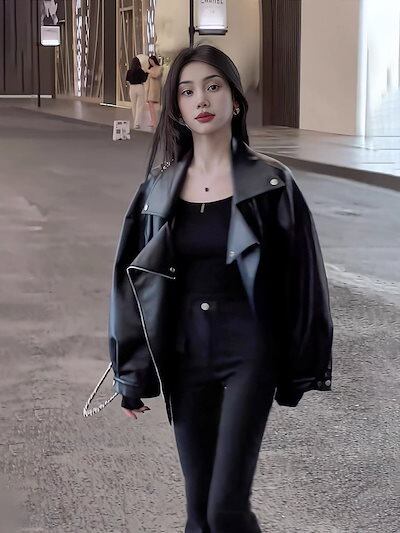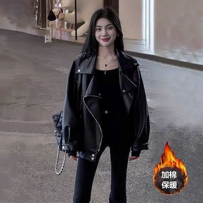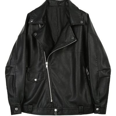 本日の限定商品ブラックレザージャケット 2024 春と秋 ヴィンテージ ルーズ ショートレザージャケット ジャケット レディース ノーカラージャケット 韓国 ジャケット ロングジャケット 秋服 レディ